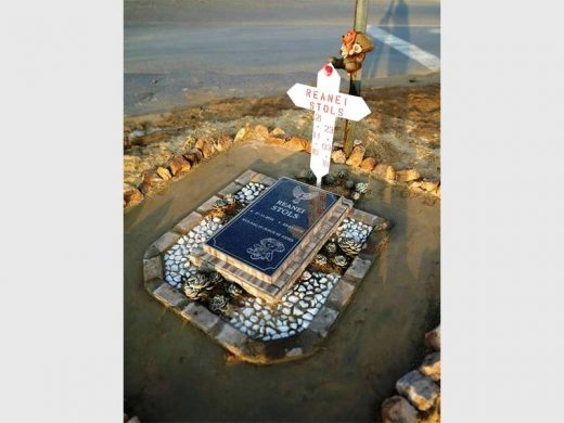 Shanei still does not realise that Reanei had died. Reanei’s father, Renier Stols, has made a memorial shrine next to the road in Vanderbijl Park where the accident happened.