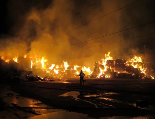 Compressed paper material/bales were staked under live high voltage electrical cables running across Commercial street in Wadeville industrial area Germiston. The fire was burning vigorously encapsulating the bigger area of the company. Flames projected intense heat to the electrical cables which had a potential to snap off.