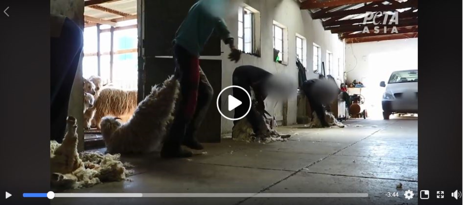 Footage revealed goats being dragged by their horns and legs, a man can be seen kneeling on a goat’s neck, goats being lifted by their tails and thrown across the floor. Shearers can be seen inflicting wounds on the goats and crudely stitching up the wounds on the shearing floor, without providing any pain relief or anaesthesia.