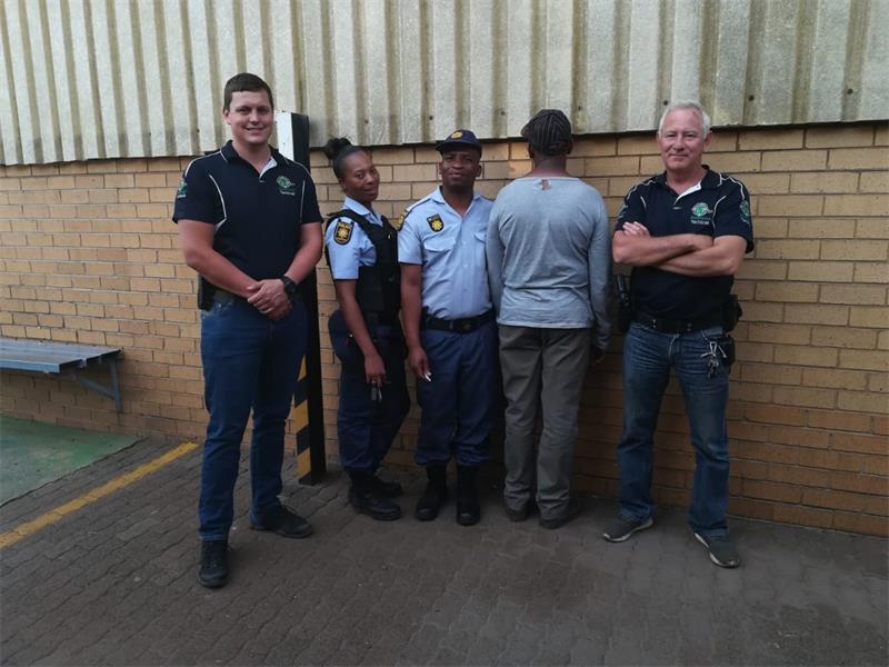 At about 3.20pm a lookout was given to all Brackendowns vehicles patrolling that a Silver Toyota Yaris was stolen on Hennie Alberts Street in Brackenhurst. Shortly after the notice was given to officers, 4th Dimension Security officers were in Thokoza searching for the stolen vehicle when they noticed the Yaris, with the correct number plate driving behind them. The security officers made a U-turn which prompted the suspect to do the same. A chase ensued between the officers and the suspect and they called for backup. Brackendowns OCC members joined the chase and together they cornered the suspect at Phola Park robot in Thokoza.