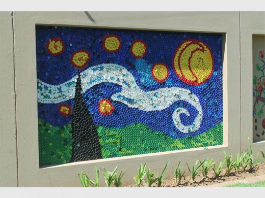 This project is all about working together and creating something to be proud of. If you drive past the school you will notice creative art on their wall which was made out of bottle caps.