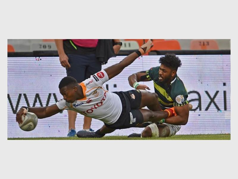 The opening ten minutes of the clash were slow as the teams battled to build momentum, but the Toyota Free State Twelve minutes into the game, Cheetahs earned the first points through a penalty try, after which SWD lost Mzufukile Sofisa to a yellow card. The hosts took advantage of this and scored two tries within two minutes compliments of Rabz Maxwane and Tian Schoeman, which handed them a 19-0 lead.