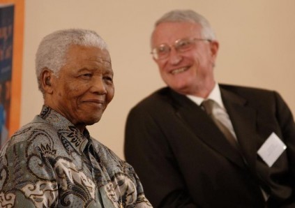 Former president Nelson Mandela and Oxford University Vice Chancellor John Hood pictured at the signing of an agreement to build leadership in South Africa through scholarships, 2 September 2008, in Johannesburg. The Mandela Rhodes Foundation has now beco