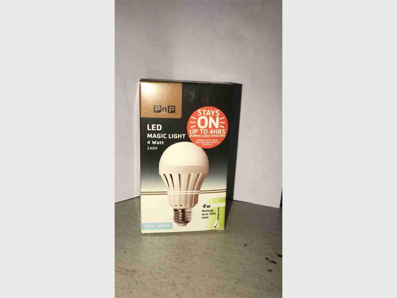 I saw a post on FaceBook which interested me greatly. A woman had managed to buy a light globe which charges while the light is switched on and when the power goes off your lamp will still shine. They are only a very small Watt though (four), but will definitely do as a back-up. They are R89.99 each and I know they are available at Pick n Pay Panorama Mulbarton and Steeledale, but I’m sure other Pick n Pay’s will have them too.