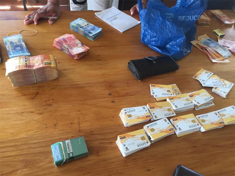 The two suspects aged between 32 and 42, were arrested and charged with possession of stolen Sassa cards and money laundering.