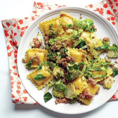 30-minute meals: Ravioli with sausage and Brussels sprouts