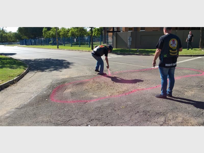 The group of bikers led by Willie Labuschagne marked safety hazards and potholes in the streets of Alberton.