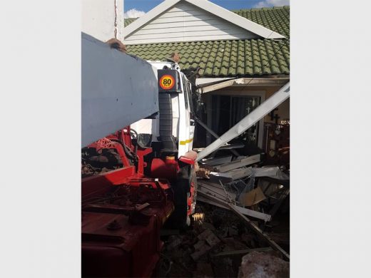 “The driver was not in the truck when it began to move. He then tried to stop the truck, but the truck drove over him and hit the boundary wall of a town house in Riverside Village in Paul Kruger St where it came to a stop,” said the owner of the truck.