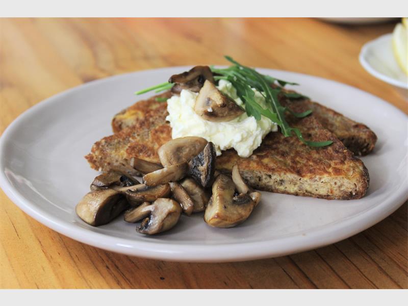 Turn French toast into a gourmet ‘brekkie’ with mushrooms, dollops of cottage cheese and fresh rocket leaves.