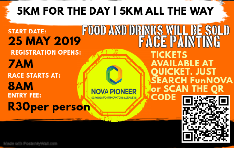 Tickets available at Quicket: https://www.quicket.co.za/events/70830-funnova-fun-runwalk/#/ OR scan the QR Code below: