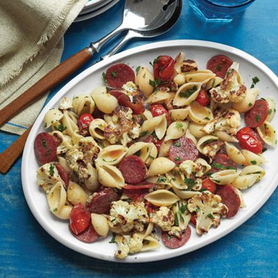 Add the tomatoes to the cauliflower, toss to combine, and roast for six minutes more. Scatter the pepperoni over the vegetables and roast until the cauliflower is golden brown and tender, six to eight minutes more. Toss the pasta with the cauliflower mixture and parsley.
