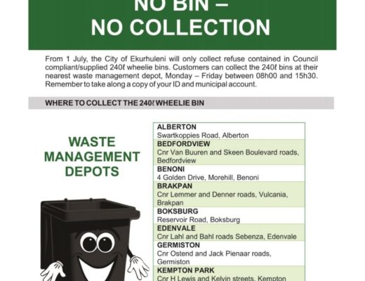 From July 1, the City of Ekurhuleni will only collect refuse contained in council-compliant or supplied 240-litre wheelie bin.