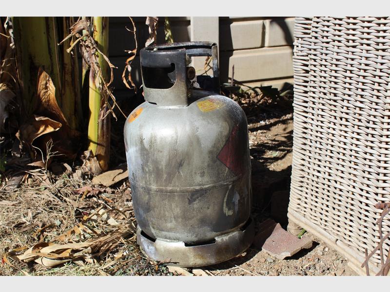 A 9kg gas cylinder in one of the pensioner’s outside rooms caught fire.
