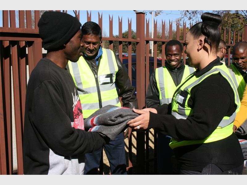 Electrical Warehouse and Tutela worked together to provide homeless people in Alberton with a blanket and meal.
