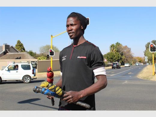 ARMED with his three juggling sticks, Thabiso Katiba (27) keeps motorists entertained while earning a living.