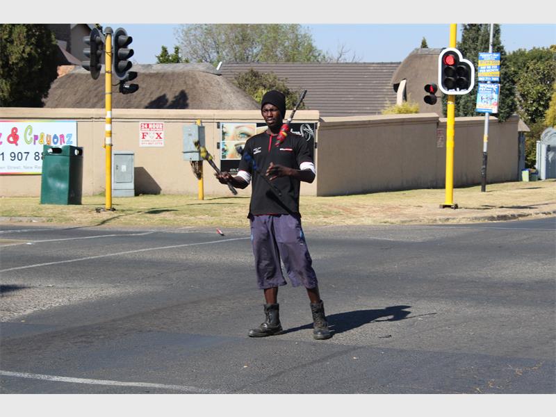 Juggler Thabiso Katiba (27) keeps motorists entertained with juggling while they go on their different journeys.