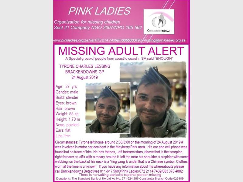 Anyone with information about Lessing can contact Const Manganye on 011 617 5600 or 083 864 1801.