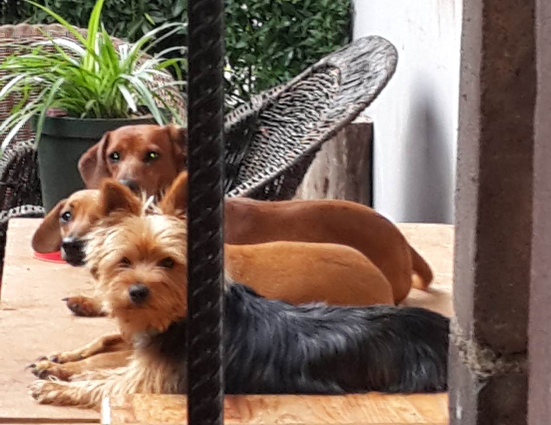 Clyde, our much loved brown male Daschund has gone missing from Golf Course Road, Golfview, within the boom gate area.  He is very muscular and athletic, and has a white ‘bokbaardtjie’, hence his nickname ‘Bokkie.’ If you have seen him or know of his whereabouts, please could you call Michélle on 083 785 4967 / Allan on 083 722 1049? Clyde is the dog at the back.