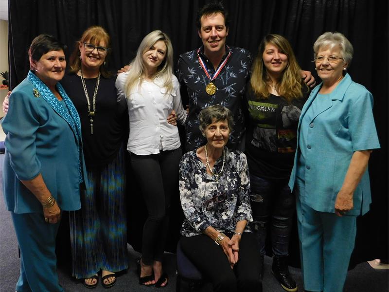 Pieter Kok van Emmanuel het aan Manie ’n medalje oorhandig vir besondere diens vir al die jare wat hy by Emmanuel kom optree het. Daarna het almal lekker saam gekuier, ietsie te ete en drinke geniet en huistoe gegaan met ’n glimlag en ’n warm hart.