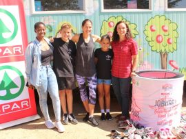 BUSISIWE Nobela, runner up for the Face of SPAR Women’s Challenge 2019 representing the South region, along with Cornel Steyn (SPAR South Rand) and René Kalmer (ambassador for SPAR Grand Prix series) came along to Lerato Education Centre in Jackson’s Informal Settlement to handover a huge donation of trainers to the school.