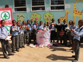 “The trainers are going to make a lot of our learners very happy,” said the school principal, Netsai Maposa. Sister Helen (co-ordinator of Lerato Education Centre) added, “Our children will be thrilled to each get a pair or two of these fantastic trainers. The larger sizes won’t go to waste as we get a lot of people coming to us for help from the informal settlement, they’ll be very grateful for a decent pair of shoes.”