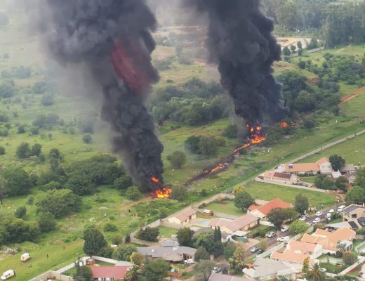 Gas line on fire behind Phillip street in Verwoerd Park. All gas lines have been shut down and will be later verified which gas line has been affected.