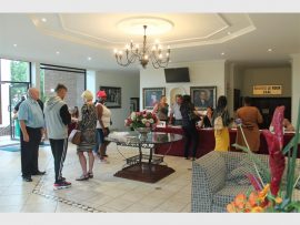Matrikulante van Hoërskool Marais Viljoen in die voorportaal besig om hulle uitslae te kry.