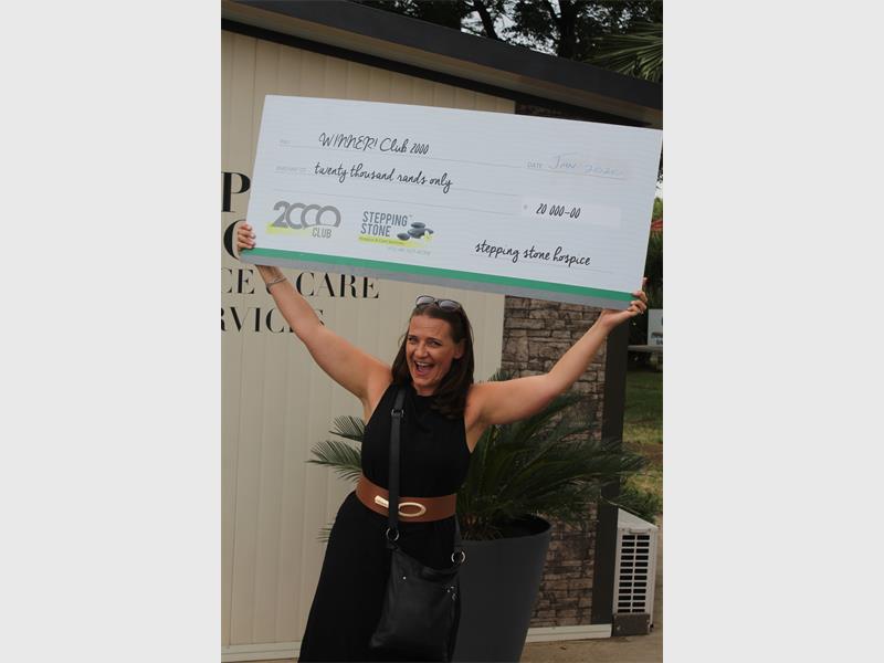 A delighted Annemarie du Toit from Alberton is the first prize winner of a whopping R20 000 in the January draw of the Stepping Stone Hospice Club 2000 fund-raising programme.