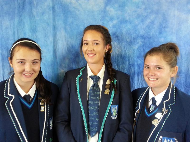 Hulle maak hul skool trots: Chané Naudé (Gewigstoot Dogters o.19), Samantha Slatter (Gewigstoot Dogters o.19) en Rouxlé Le Roux (Diskus en Gewigstoot Dogters o.17).
