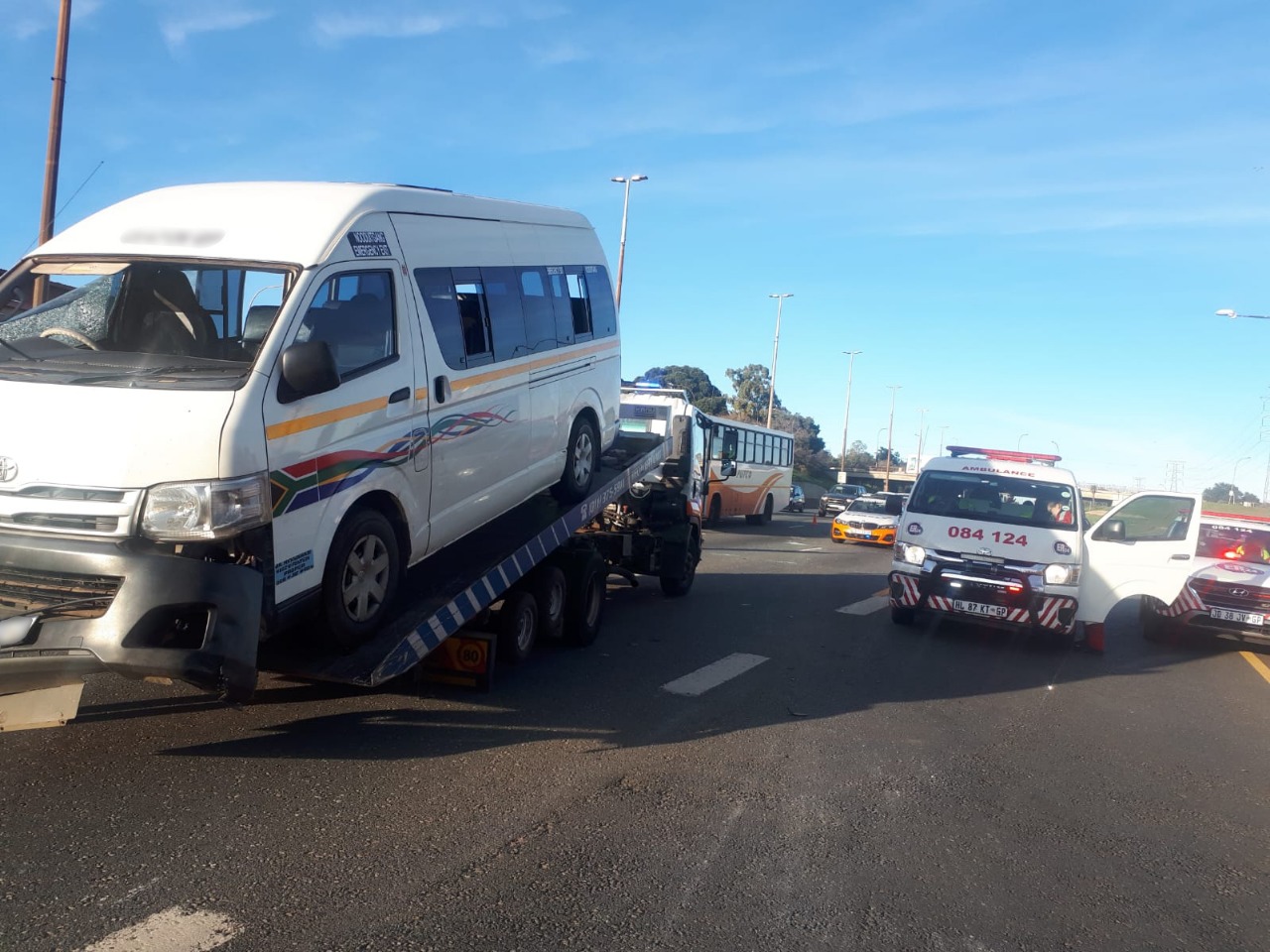 According to Russel Meiring ER24 spokesperson, “ER24 paramedics, along with several other services, arrived on the scene at 07h00 to find the taxi upright in the middle of the road. Several people were found seated on the side of the road,” said Meiring