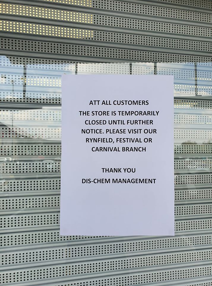 Dis-Chem stated the store is closed until further notice.