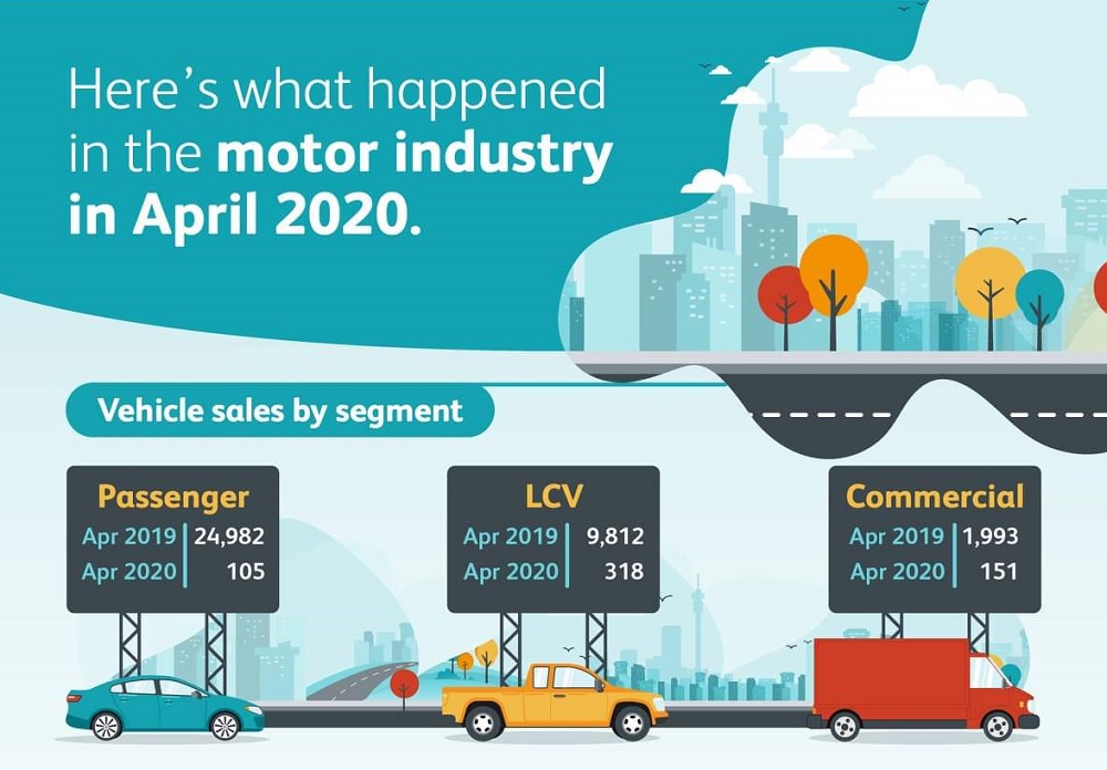 The market recorded total sales of 574 units, down 98.4% according to the National Association of Automobile Manufacturers of South Africa (NAAMSA). Some 105 units were passenger cars and 318 were light commercial vehicles, impacting the year-to-date volumes of those segments downwards to 28.1% and 38.5% respectively. The industry total is 32.1% down year-to-date.