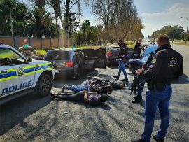 The vehicle and occupants were searched and arrested for being in possession of unlicensed ammunition, for possession of drugs, being in possession of suspected stolen property valued at about R45 000, for possession of dangerous weapons and Covid-19 violations.
