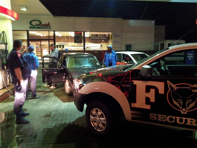 Fox Security were passing by Ring Road East and noticed that the petrol attendant screaming at the driver of the vehicle. A Fox Tactical Officer managed to block off the exit and forced the black City Golf back into the filling station.