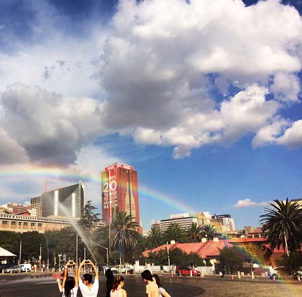 JOHANNESBURG – Using sunlight, water, some fancy science and a little bit of magic, rainbows were conjured up in the Joburg CBD. The rainbows were created to mark the 20th anniversary of South Africa’s democracy and the birth of the “Rainbow Nation”.