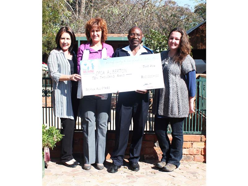 RE/MAX (Remax) All Starts Alberton donated R10 000 to the Alberton SPCA on June 5.