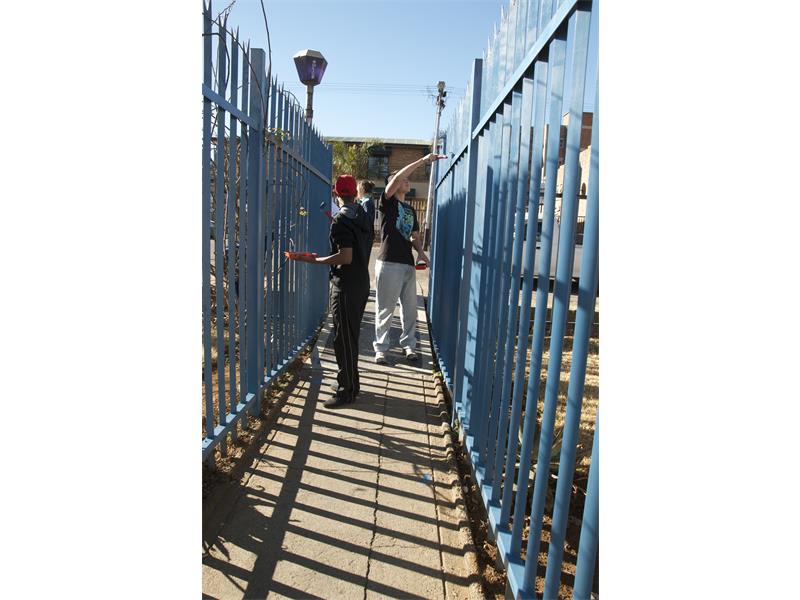 ALBERTON – Van Dinamika se graad 10 leerders het die heining by die Alberton SAPS gaan verf.