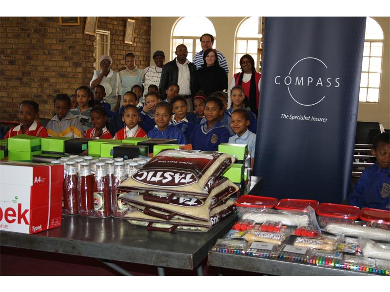 ALBERTON – The 169 children from the four different Primary Schools in the area received donations of groceries, toys and stationary from Compass Insurance LTM.