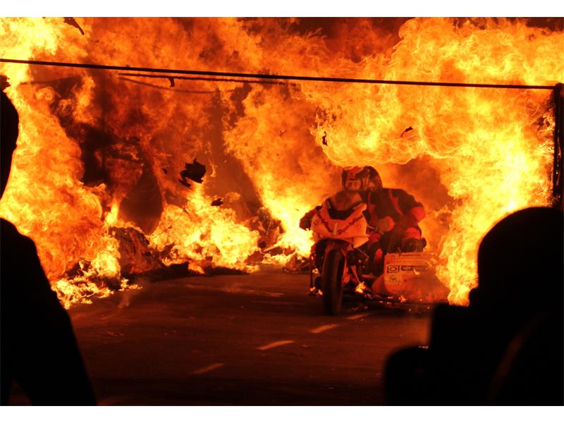 Once fully on fire, the tunnel furnace was broached by De Kock and Schoeman with the sidecar. They emerged 11 seconds later, with the new Guinness record seemingly in place.
