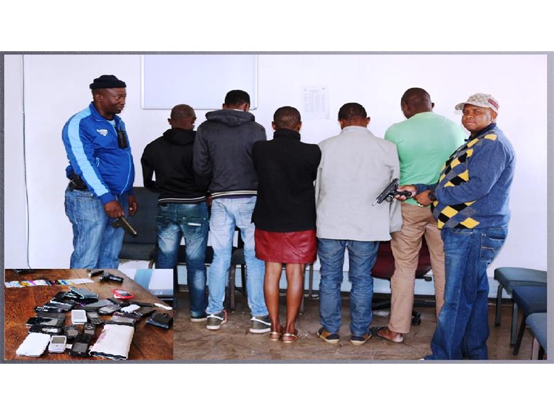 FOUR men and a woman suspected to be linked to a string of robberies, murder and hijackings were arrested in Katlehong on September 22.