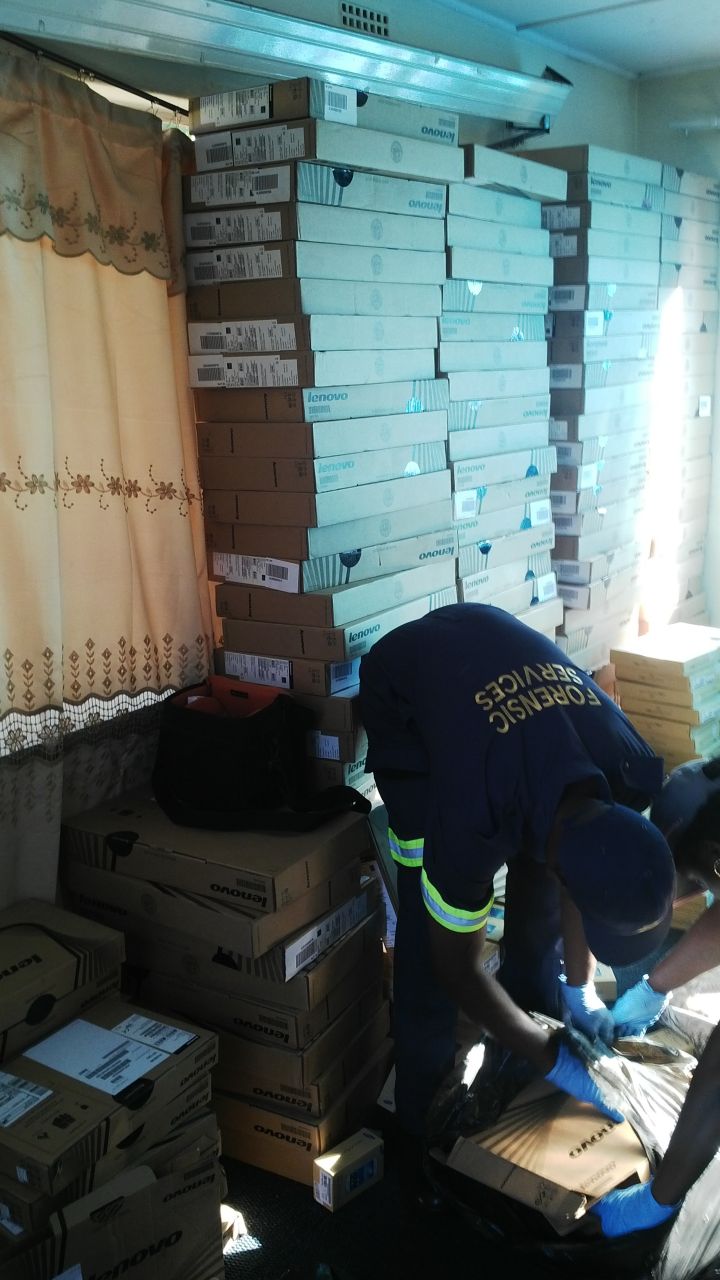 The electronic goods were stolen during a robbery at a warehouse of the South African online retailer, Kalahari.com near OR Tambo International Airport.