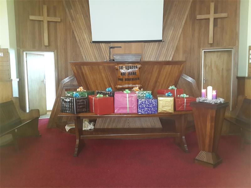 Die NG Gemeente Alberton-Oos se dames het 10 van Ligstad Naskoolsentrum se gesinne bederf met Kersfeespakkies vir die Kersseisoen.