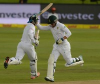 South Africa posted a total of 552/5 declared on the second day of the first Test match in Centurion. Debutant Stiaan van Zyl scored his maiden test century, while captain Hashim Amla scored a double century.