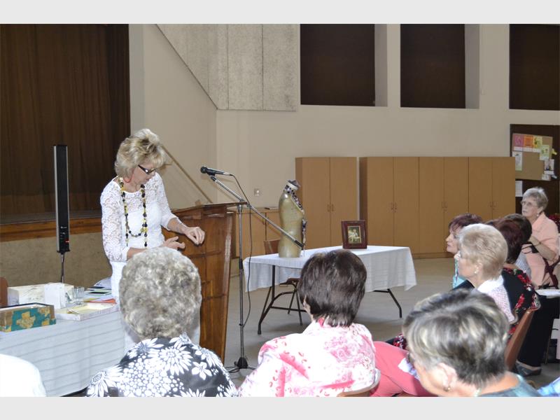 Die dames van die VLU Brackenhurst tak het 'n interessante demonstrasie gekry by Magriet Coetzee. Sy het 'n pragtige halsnoer gemaak van knope.