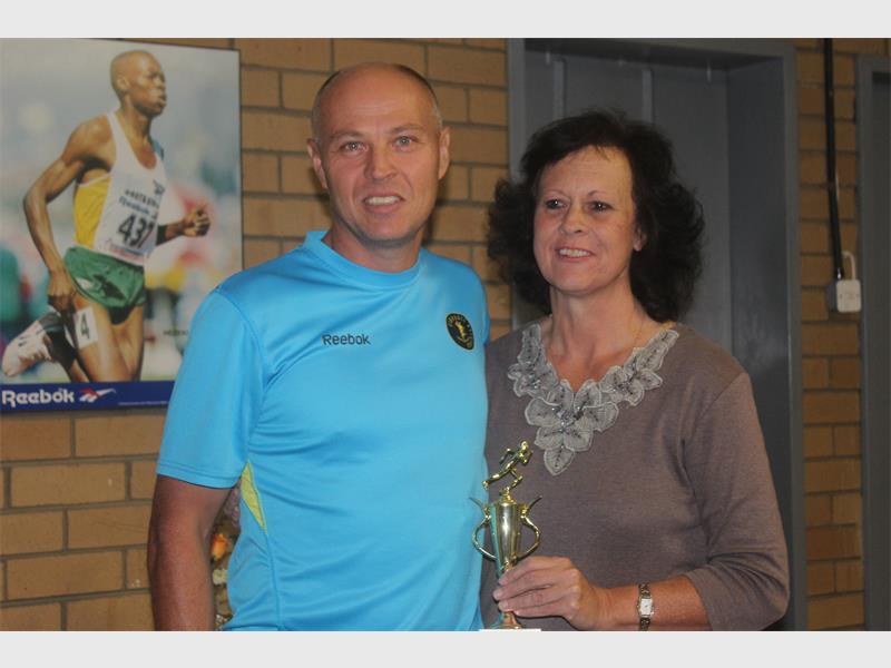 ALBERTON – Glyn Rynhoud (men) and Judy van Dyk (women) received their awards from Denise Venter.