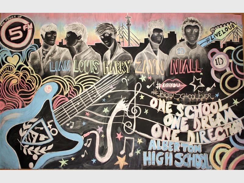 Rob Forbes and Fix from 5FM, who hosted the competition, interviewed Mr von Platen on air a number of times to issue challenges as well as to chat about how the contest was developing. Spirit in the school was building every day and One Direction mania officially hit Alberton High! The school participated in three challenges in the finals, which included the most outstanding chalkboard artwork drawn by the learners in the school, a Twitter race, in which they reached over 530 retweets and a quiz.