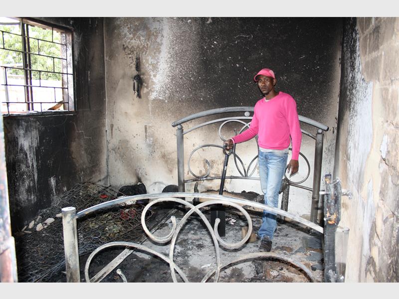 On Saturday morning, Vuyo and her mother left extention 4 to confront the suspect. When questioned by Vuyo’s mother, the disgruntled ex-lover denied setting the house on fire, but said he was only prepared to pay half the money of the damaged goods.