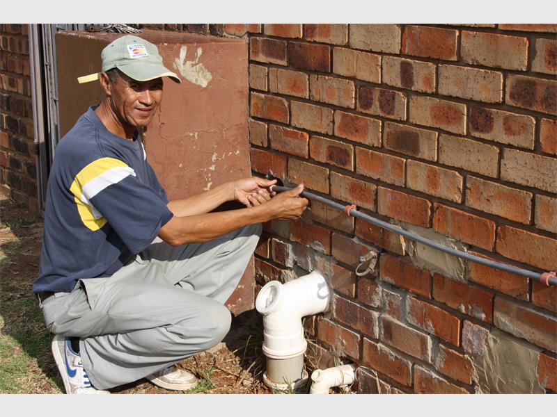 Job Buitendag, caretaker at the United Reformed Church (URC-VGK), replaces the copper pipes stolen by thieves targeting churches.