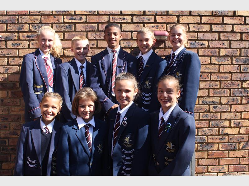 PRESTREEDERS IN SPORT: Die Laerskool Orion wil graag vir die volgende sportpresteerders geluk wens: Voor: Riana Swart, wat ‘n eerste plek behaal het vir SA hekkies o.11 en ‘n derde plek vir SA 1 200m, Jana Lotz het Noord-Gauteng kleure ontvang vir jukskei, Kayla Badenhorst het Oos-Gauteng hokkie kleure verwerf vir o.12B-span, Izelle Oosthuizen het Oos-Gauteng hokkie o.12B en Gauteng netbal o.12 kleure ontvang. Agter: Morgan Myburgh het Oos-Gauteng hokkie o.13B kleure ontvang, Damian Smit Goue L