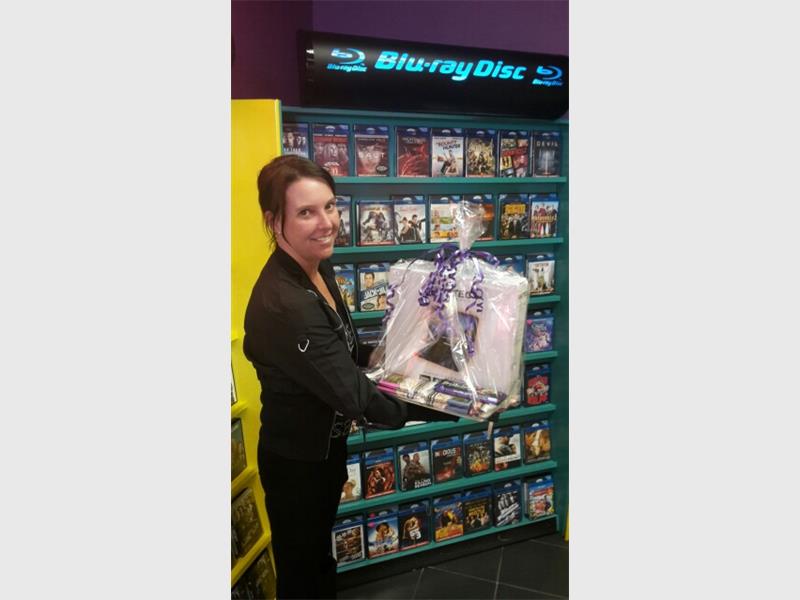 Chantal Strydom wins a portable DVD player at the Brackenhurst Blockbusters.